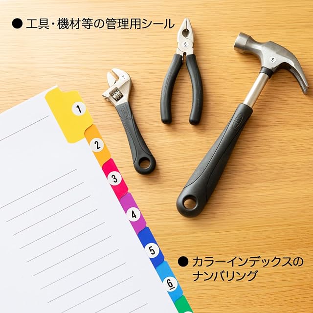 分類や見出し表示にはがして貼るだけの機能的な丸型数字入りラベルです