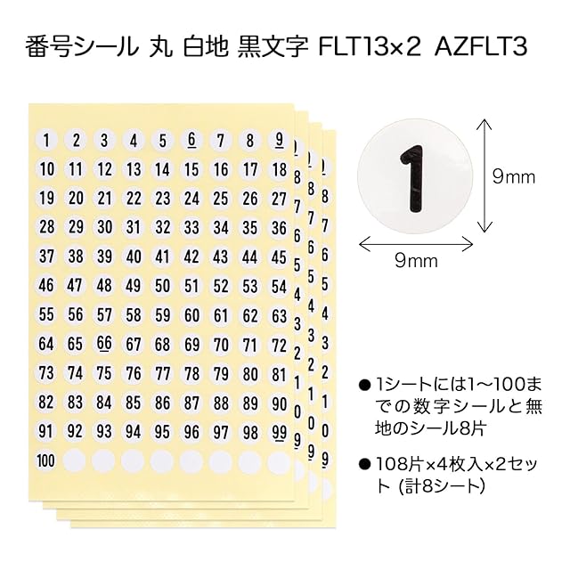 オキナ シール 番号シール 丸 白地 黒文字 FLT13 108片×4枚入×2セット AZFLT3
