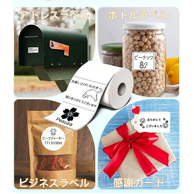 「性能」Pesuza 感熱紙は強力な粘着力と耐久性で信頼性抜群です。確実に貼り付けられる強力な接着力を備えており、簡単には剥がれないため、手軽に使用することができます。耐水性・耐油性・耐久性があり、湿気の多い場所(冷蔵庫など)や食品パッケージにも適しています