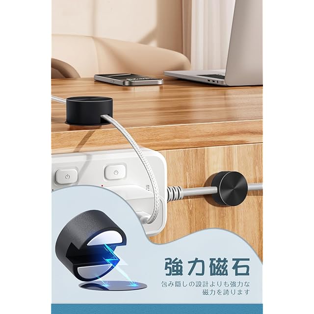 【どんな場所でも利用可能】強力な両面テープが付いたメタルプレートが同梱されています。ケーブルを収納したい場所が磁石を引き寄せなくても、メタルプレートを使用すれば簡単に問題を解決できます。メタルプレートの大きさは製品本体と同じで、目立たずに設置できます。道具は不要で、両面テープを簡単に貼り付けることができ、接着剤はアクリルゴム素材で、通常の接着剤よりも強力で、白い発泡ゴムの紙よりも目立たなくなっています。