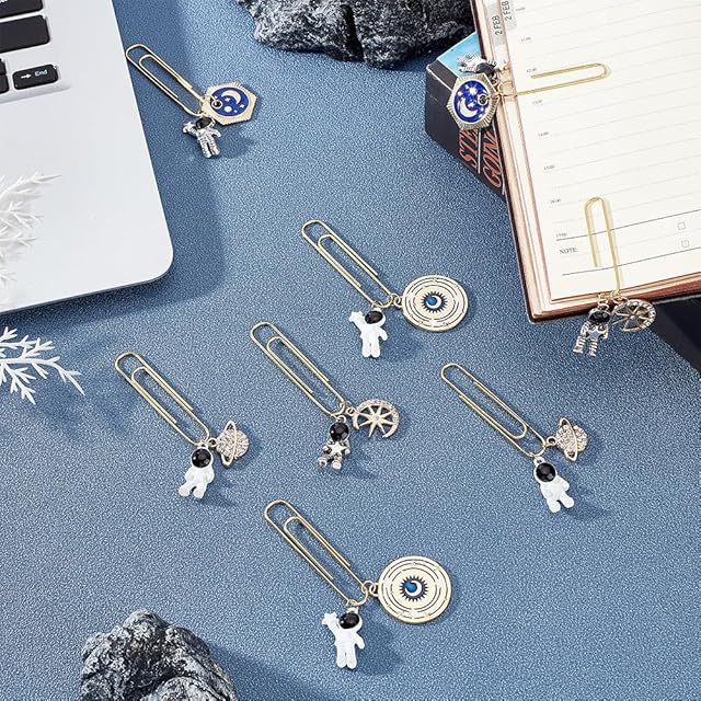 OLYCRAFT 8個4種類 ペーパークリップ ゼムクリップ クリップ エナメル宇宙飛行士付き ページクリップ ブックマーク 栞 惑星のペンダント付き 装飾 オフィス 文房具 書類整理 招待状 ブック メモ帳用
