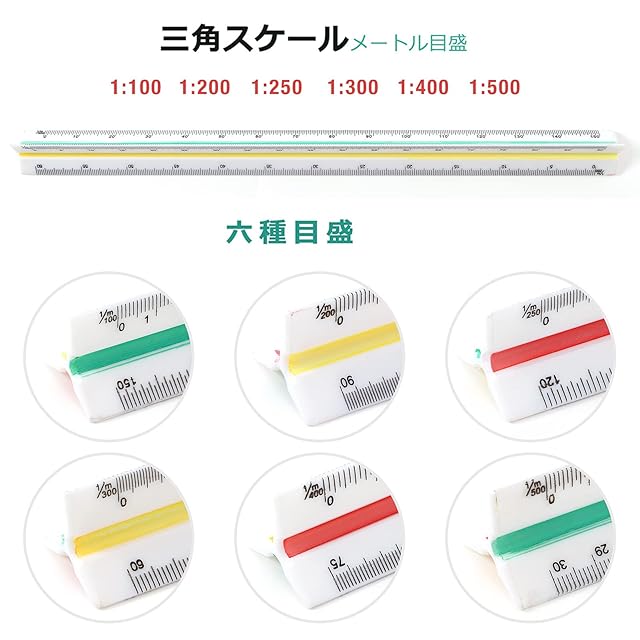 Jimjis 三角スケール 30cm 製図用品 縮尺定規 一般用 プラスチック製 特殊縮尺目盛 大規模 1/100 1/200 1/250 1/300 1/400 1/500