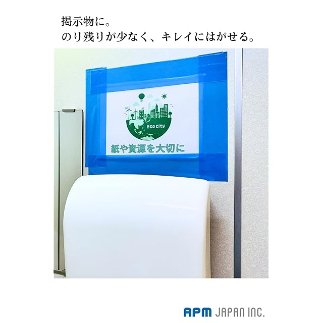 ●特徴:・手でスパッと切れて、軽くて使いやすい。 ・PET+PEラミネート+アクリル粘着剤の三層構造で薄くてもしなやかで丈夫。 ・のり残りしにくい専用設計。(長期貼付け、高温多湿、直射日光での使用にはご注意ください) ・どこでも手軽に付箋、メモ代わりに。 油性マジックで字が書けます。 ・マットな青色 ・台風時のガラス飛散防止などの災害備蓄やちょっとした補修、仮固定用にも最適