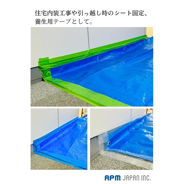 ●用途: 内装養生、台風防災(ガラス飛散防止)、引っ越し用仮止め、キッチンや家庭でのメモ・付箋代わり、包装封止め、工作やDIYに