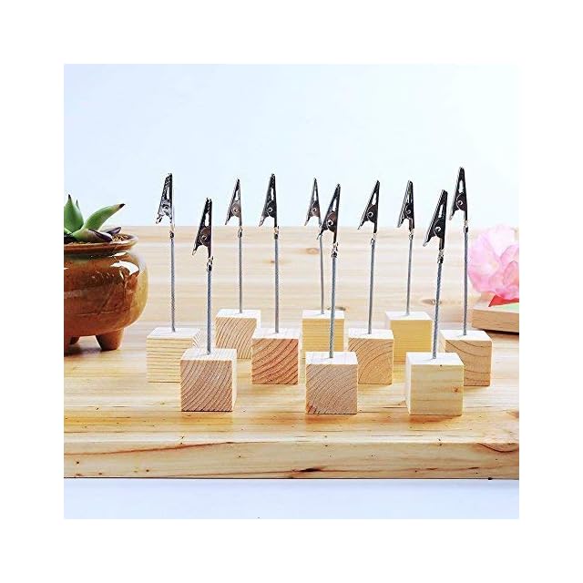 木製 スワイヤー メモクリップ メモホルダー メモスタンド カードスタンド カード立て・写真立てに オフィス/机上用品/文房具用に (木色10個セット)