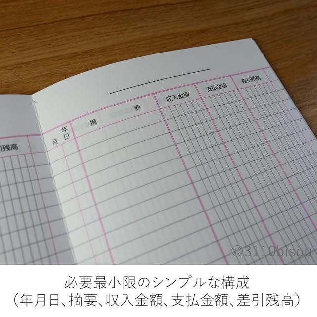 年月日・摘要・収入金額・支払金額・差引残高の記入欄を記入していただけます。