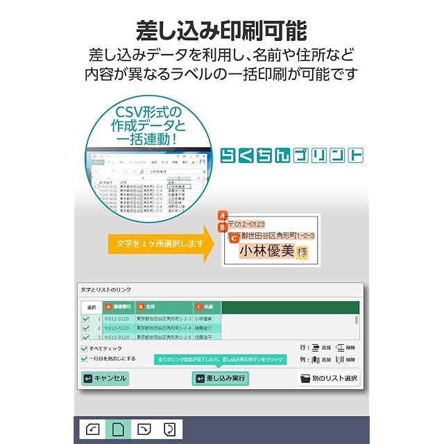 「らくちんプリント3.0」を使って、表計算ソフトからの差し込み印刷も簡単です。