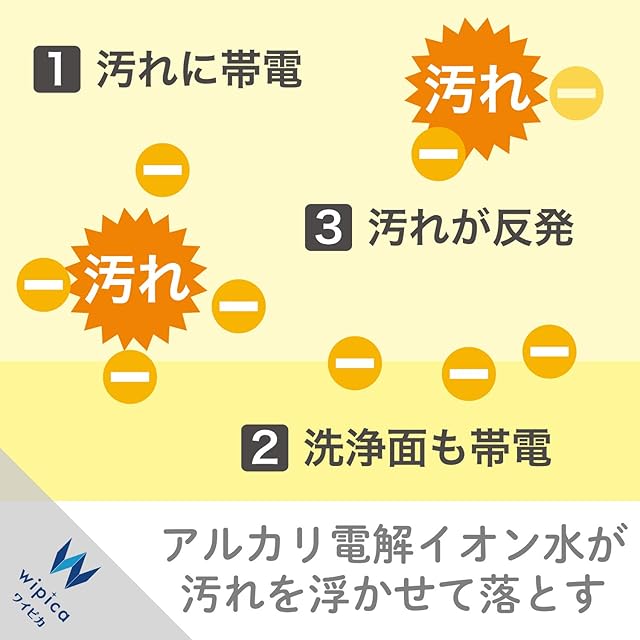水を電気分解することで得られるアルカリ電解イオン水の働きで汚れを浮かせて落とします。