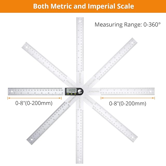 Neoteck デジタル角度定規 デジタル角度計 360度 200mm ホールド機能付き ゼロリセットでき ステンレス鋼製 LCD表示 分度器 角度ルーラー 角度ゲージ