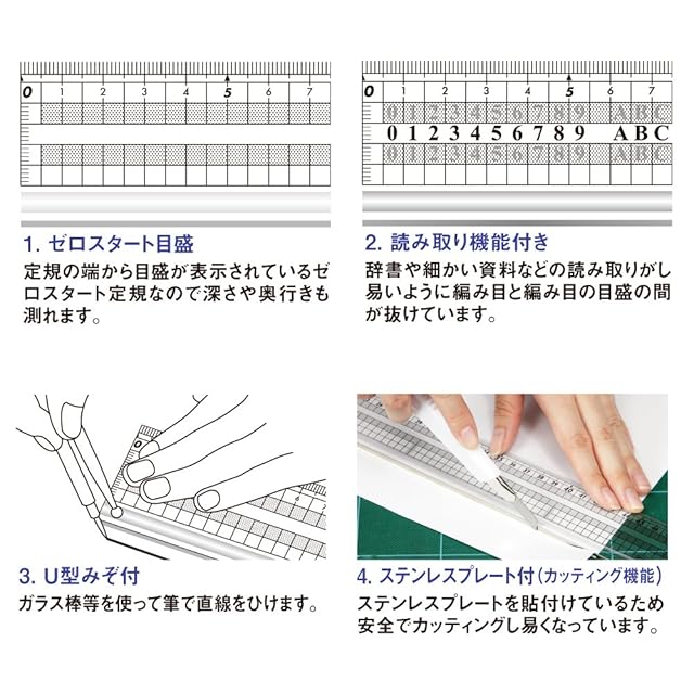 共栄プラスチック ORIONS グランデ方眼みぞ付カッティング定規 40cm GCT-40