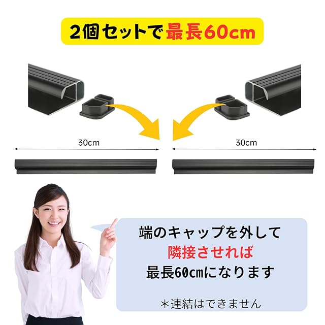 【最大60cmになるオーダークリッパー】端のキャップを外して隣接させれば、途中で途切れることなく伝票を移動させることができます。*組み合わせることはできません。