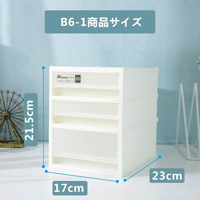 Paulele(パウレレ)収納ボックス 収納ケース 引き出し 3段 B6-1サイズ:幅17×奥行23×高さ21.5cm 小物収納 収納ケース ケース ボックス 引出し 小物ケース 書類 卓上収納 整理整頓 デスク周り レターケース 事務用品 文房具