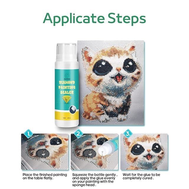 永久保持シャイングルーシーラー: PHILODOGS ダイヤモンドシーラーペインティングコンサーバーは、完成した 5D ダイヤモンドペインティングを永久的に、きれいで光沢のある仕上がりに保つのに適しています。 その後、接着剤が乾燥すると、塗装面は透明に戻り、再び輝きます。