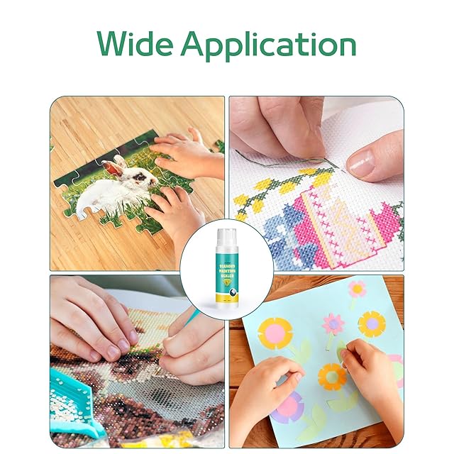 使いやすいダイヤモンドアート接着剤: 接着剤ボトルを軽く絞り、ダイヤモンド絵画やジグソーパズルの表面に落とし、アプリケーターブラシを使って均等に塗布し、乾燥させます。硬化には少なくとも2時間かかりますが、泡がほとんど残らない簡単な使い方です。