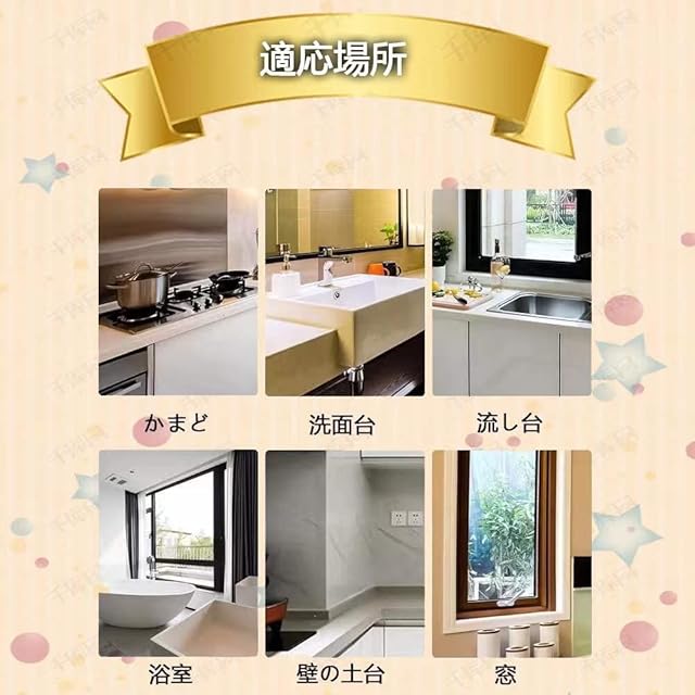 ※【適用範囲が広い】水や汚れ、カビ、埃などを防げますので、玄関から、客室、浴室、洗面所、キッチン、水回り、トイレ、お風呂、浴槽、便器、バスルーム、流し台などの様々な場所を守れてくれます。適用の表面は木製品から、ガラスや金属、タイル、革、大理石、プラスチックなどにほぼ対応できますが(曲面、凹凸面にもよくなじむので様々な形に対応可能)注意:粉塵だらけ、油こいところとは向いておりませんので、何卒ご了承をお願い致します。