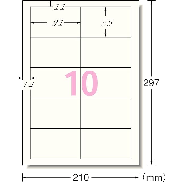 A4判 10面 名刺サイズ/シートサイズ:A4判 (210mm×297mm)/カードサイズ:91mm×55mm(2列×5段)