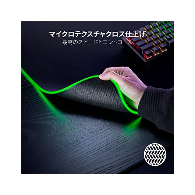 【マイクロテクスチャクロス仕上げ】 スピードとコントロールの最適なバランスを実現するマイクロテクスチャ仕上げの布製表面は、あらゆるプレイスタイルに対応し、マウスのわずかな動きもカーソルの緻密な動きに変換されるので、正確なマウス操作が求められるFPSなどにおいて、究極のトラッキング精度をもたらします。