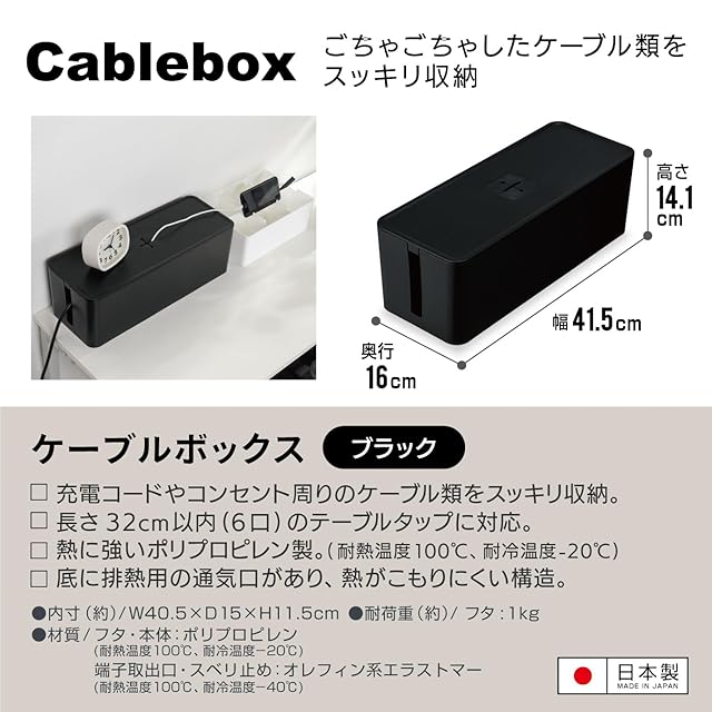JEJアステージ(JEJ Astage) ケーブルボックス コード収納 ブラック cb-BK