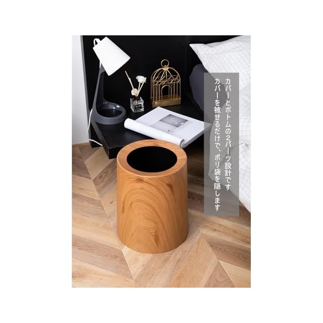 商品名:ゴミ箱 木目 袋が見えない ごみ箱 フタなし ごみばこ 蓋なし 2重構造 円型