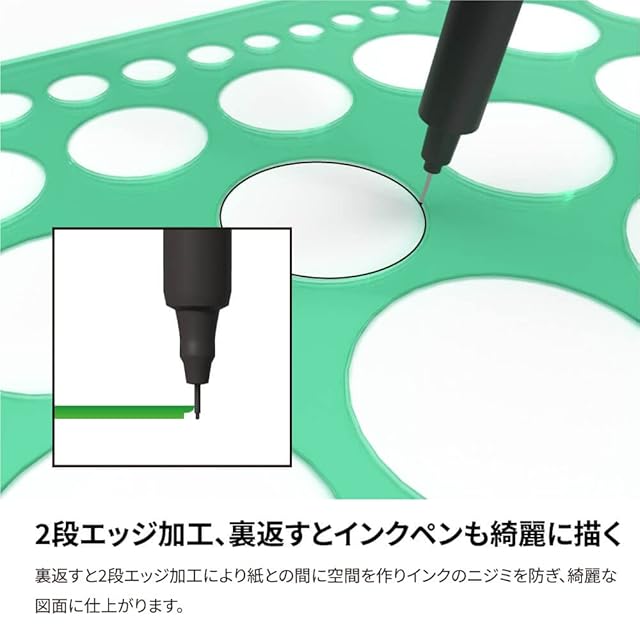穴形状の切削断面はCNC2段カットミーリング加工を採用! 表からは鉛筆で、裏返すとインキペンで描いても滲みません。 材料の厚さは1mm厚を使用していますので、割れにくく、耐久性があります。目に優しく認識しやすいグリーン色を採用!