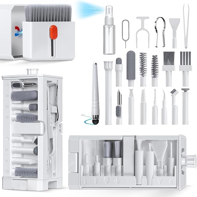 Inesore for 32 in 1多機能クリーニングキット,携帯電話クリーニングキット、充電口クリーナー、タッチペン、SIMカードツール、キーボードブラシ、スピーカーブラシ、iPhone、AirPods、ノートパソコン、iPad、キーボード、MacBook、イヤホン、カメラレンズ付き電子クリーニングキット(ホワイト)