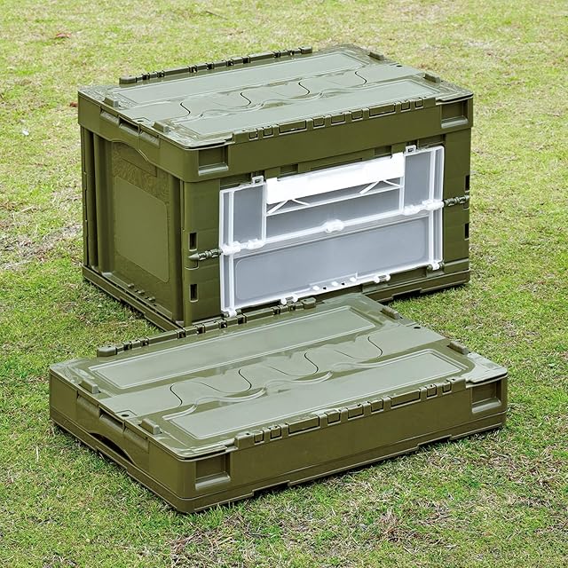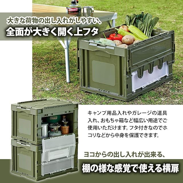 商品名:リス 収納ケース・ボックス 折りたたみコンテナ 50L 扉付 蓋付 グリーン 日本製 177487