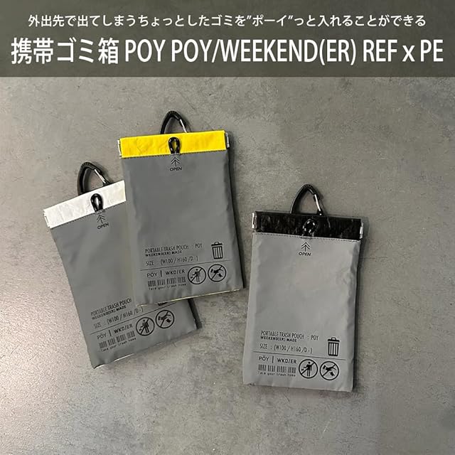 ヘミングス ゴミ箱ポーチ 携帯ゴミ箱 POY ポーイ WEEKEND(ER) REFxPE WHITE カラビナ&側面ポケット付 ホワイト 約10.5×16cm 7854401