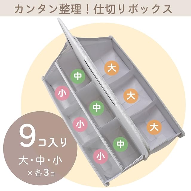 【特長3】3サイズ×各3個の仕切りボックス付き