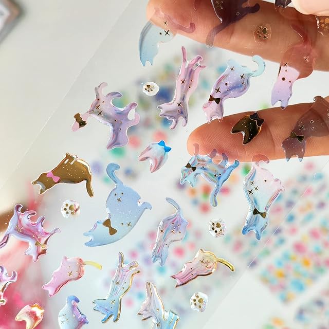 【可愛い立体シール】: ❶クリアベースのエポキシクリスタルステッカーです。接着力が強く、防水性、耐久性に優れています。❷表面の図案は箔押し工芸を采用し、はっきりしていて、金属のような質感を現しています。
