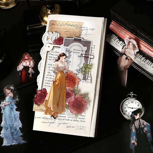 Alideco 80枚 シール フレークシール コラージュ 素材 ペーパー 素材紙 レースユートピアステッカーレトロ アンティーク 海外 韓国 シール帳 ,メモ用紙ノート素材、日記装飾用品(aideluomanshi)