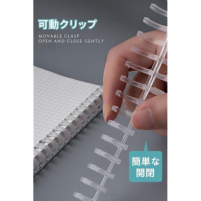 【特徴】リングの長さをハサミでカットできるので、様々なサイズの用紙に対応できます:30穴/A4、26穴/B5、20穴/A5。
