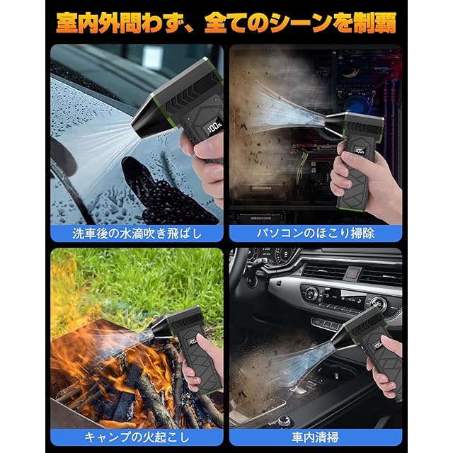 【室内外問わず、4段階風量で全てのシーンを制覇】✅✅■1段階から4段階まで風量を自由に調整可能!車の隅々に溜まった水滴や泥、パソコンの中に詰まったホコリを一瞬で吹き飛ばし、手の届かない場所にも完璧に対応!例えば、パソコンやカメラ機器の精密な掃除には1~2段階、車やアウトドアでの大きな掃除には3~4段階でパワフルな風力を選べます。長押しで瞬時に4段階目の強力風速を発動させ、キャンプやバーベキューでの着火にも便利!✅✅そして、風速の調整がこんなに簡単に!✅✅■風速ボタンを短押しで、1段階→2段階→3段階→オフ。✅✅■ 風速ボタンを長押しで、4段階風速がオン。風速ボタンを長押しして解除すると、4段階風速がオフ。