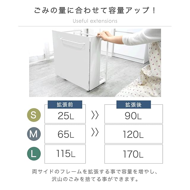 【スタッフのおすすめポイント】・最大6/8/12種類の分別が可能・ゴミの量に合わせて拡張OK・底板は袋のストック置き場として・平袋型にも対応!ごみ袋ストッパー付・床を傷付けにくいPUキャスター