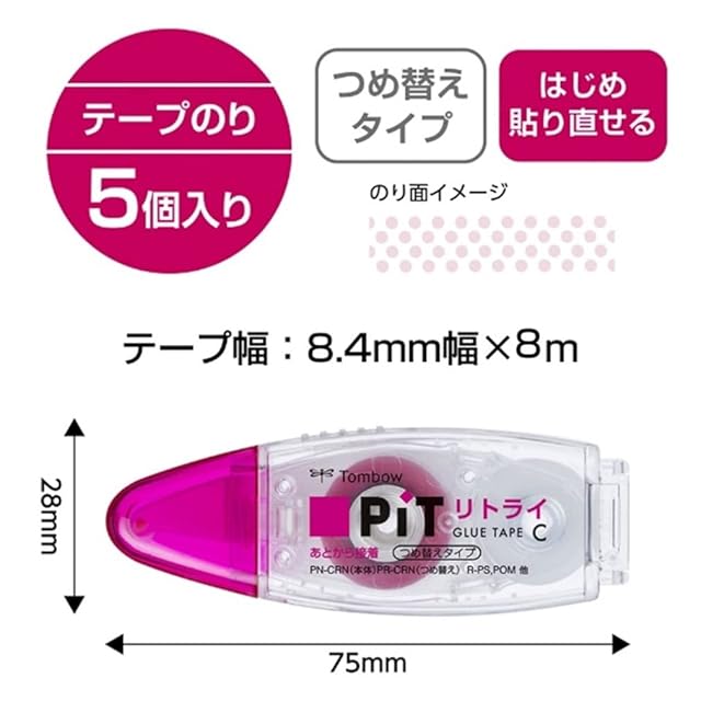 トンボ鉛筆 テープのり ピットリトライCN PN-CRN-5P 5個