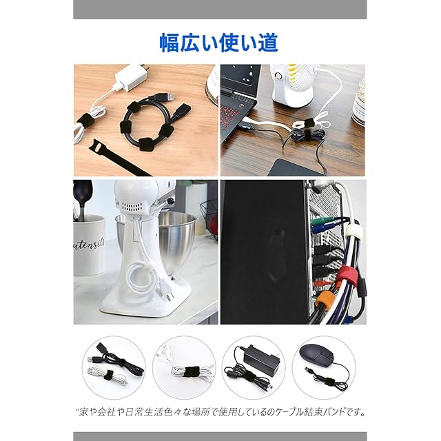 【幅広い使い道】データケーブル、コンピュータルームケーブル、電線コード、ケーブル、USBケーブル、充電ケーブル、イヤホンケーブル、鉢植えなどの日用品の束ねと固定に活躍します。ガーデニングにだって使えます、植木などの固定にも便利です。
