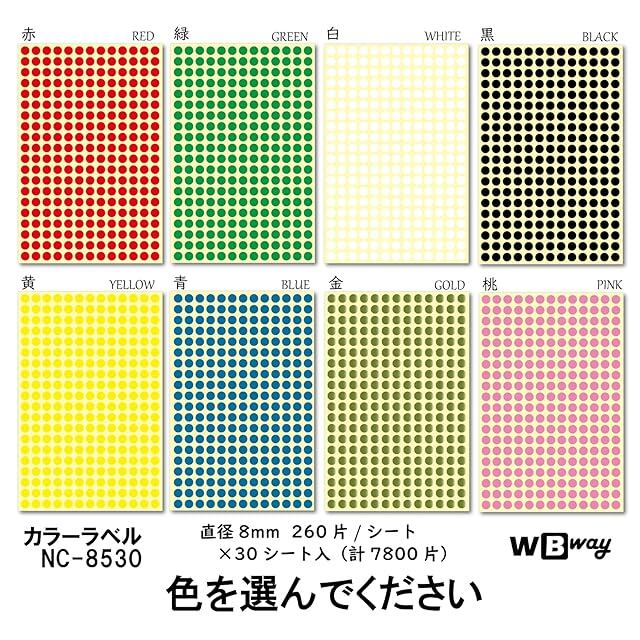 WBway【色が選べる】カラーラベル 8mm <お徳用> 30枚セット(7800片) NC-8530 丸形 シール ラベル 丸シール (黄)