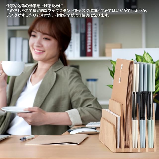 ★特徴3:【天然木桐製、軽量、美しい見た目】天然木桐製でおしゃれなファイル収納です。シンプルなデザインと落ち着いた色合いで、単体での使用も違和感なく。ファイルスタンドは完成品なので、設置の手間がなく、箱から出してすぐに使用できます。