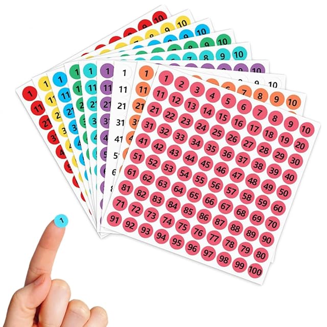 【9色 30シート 3000枚】数字 シール 1~100 カラー ラベル 番号 1.0cm 防水 タイプ セット ナンバー カルテ (1.0㎝ 9色セット)