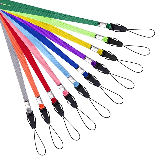 [Wisdompro] ネックストラップ 首掛け 平紐 落下防止 紛失防止 USBメモリ、キー/鍵、ホイッスル/笛、マスコット用 着脱式 松葉紐付き カラフル 10色 10本セット