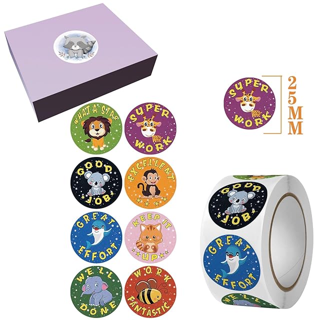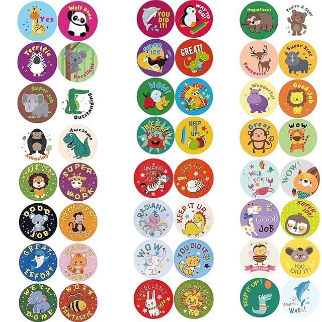 48のデザイン 3000枚 ごほうび用シール 教師褒美用シール 動物 英語 シール 可愛い シール ご褒美シール 親 幼稚園 学校用学習 教室用の教師補助用品 学生 奨励します 子供&幼児用 (48のデザイン)