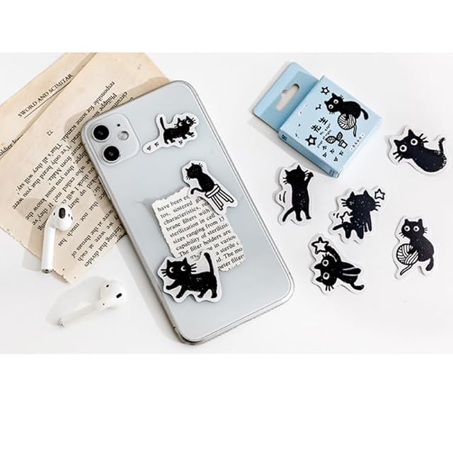 Alideco 92枚 ブランド フレークステッカー シール コラージュ 素材 レトロ かわいい 黒猫 韓国 シール帳 ,メモ用紙ノート素材、日記装飾用品