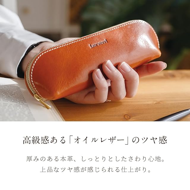 【大人のためのペンケース】 曲線を描くフォルムが美しい本革製ペンケースです。毎日使うものだから、上質なオイルレザーの一枚革を贅沢に。しっとりとした手触りと艶。使うほどに本革ならではのエイジングが加わり、愛着の増すアイテムです。