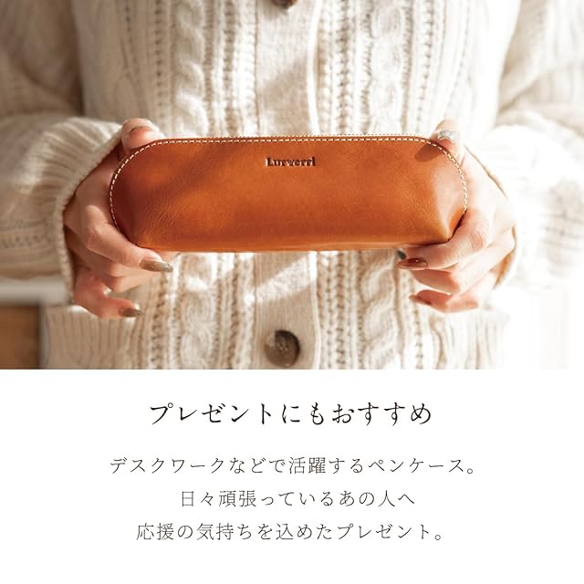 [Lurverri] ペンケース 大容量 可愛い 丸型 本革 イタリアンオイルレザー YKKファスナー 大きめ 筆箱 シンプル ビジネス ギフトBOX付き ブラック