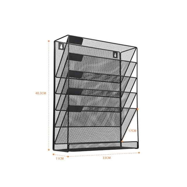 EASEPRES壁掛けファイルラック 6段 卓上収納ラック 卓上収納可能 ファイルラック 書類トレー メッシュメタル レタートレイ 壁掛け書類ラック 組み立て不要 新聞/雑誌/A4ファイル/フォルダー大容量 オフィス 寝室 収納 多機能41cm * 33cm * 11cm(ブラック)