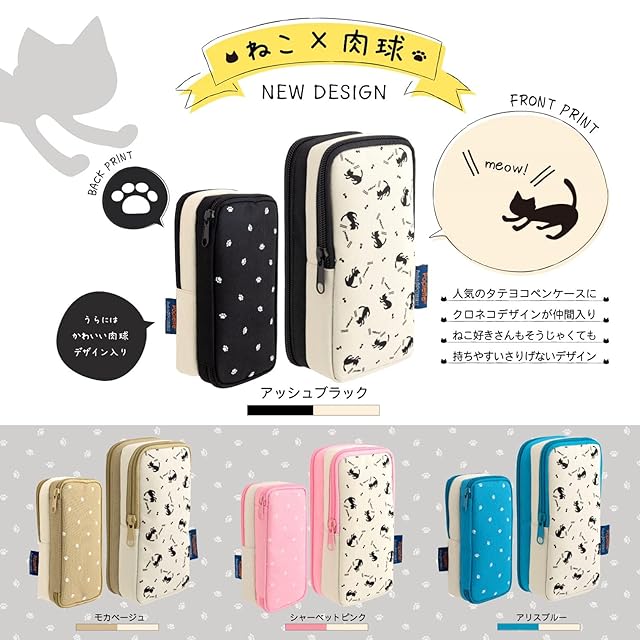 ニッケン文具 タテヨコ ペンケース Poplette クロネコ アリスブルー PLPN-BL
