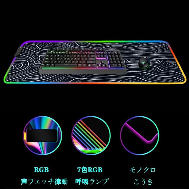 大型 led RGB 光るゲーミングマウスパッド音に反応 動きのある 声フェッチ律動防水 滑り止め ゲーム音楽の時タラクティブ感、没入感, 800mm x 300mm(アートライン 800×300)