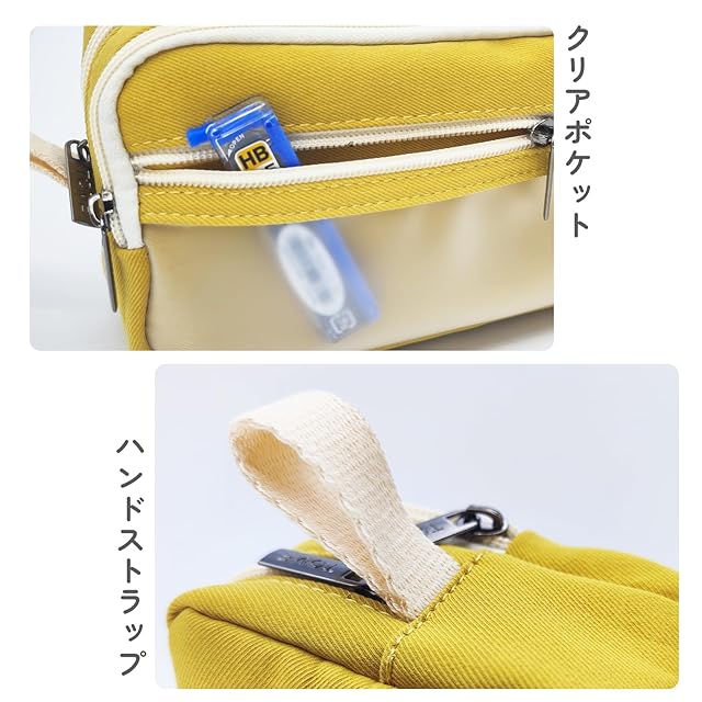 GODCHI 筆箱 ペンケース ペンポーチ 小学生 中学生 高校生 男の子 女の子 大容量 文房具 使いやすい 多機能 取っ手付き オシャレ おしゃれ コンパクト 筆入れ 持てつき シンプル 便利 透明 クリア ポケット付き 人気 (イエロー)