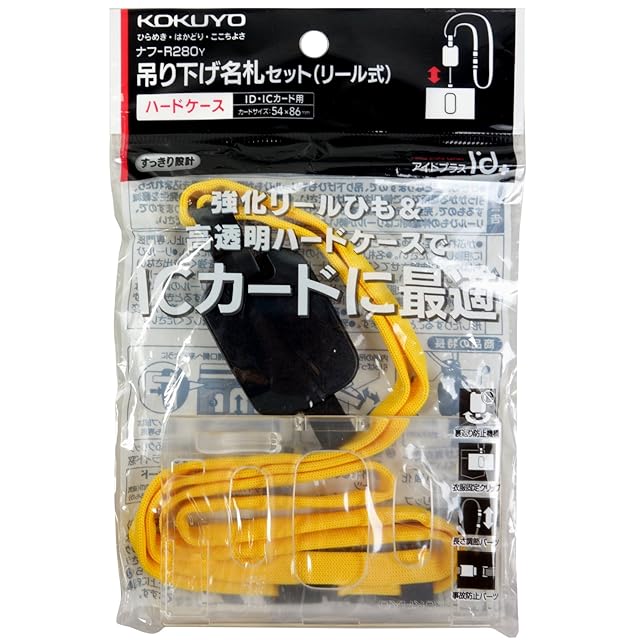 コクヨ 吊り下げ 名札 リール式 黄 フックパーツ採用 ハードケース ナフ-R280Y