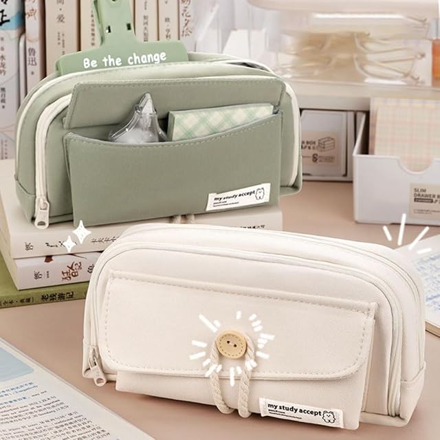 Nannlia ペンケース 韓国 おしゃれ 筆箱 大容量 シンプル 人気 かわいい ペンポーチ 筆入れ 無地 多機能 中小学生 高校生 大学生 男の子 女の子 子供用 (グリーン)