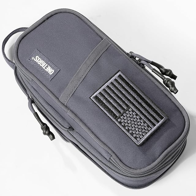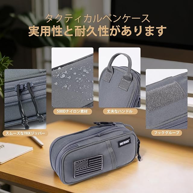 OneTigris ペンケース 大容量 筆箱 YKKファスナー 防水 500Dナイロン製 耐久 2階建て 折り畳み シンプル 多機能 筆入れ ペンホルダー付き コンパクト 強力な分類 タクティカル風 メンズ、男の子、大人、小学生、高校生、大学生用 グレー